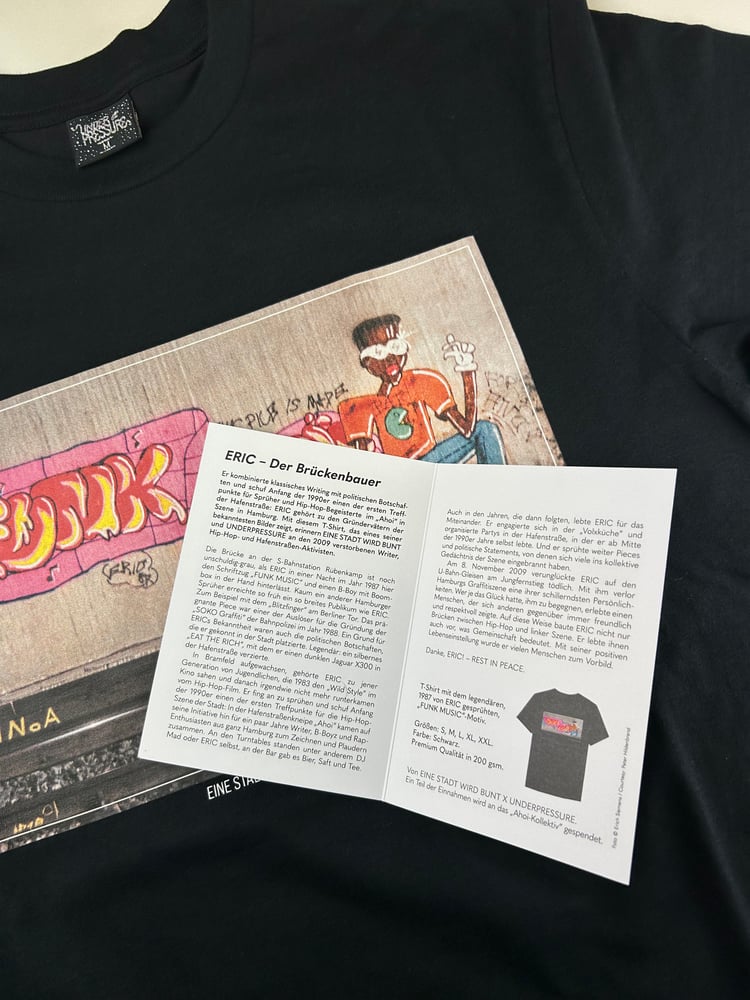 Mit diesem T-Shirt,erinnern EINE STADT WIRD BUNT und UNDERPRESSURE an den 2009 verstorbenen Writer „ERIC“